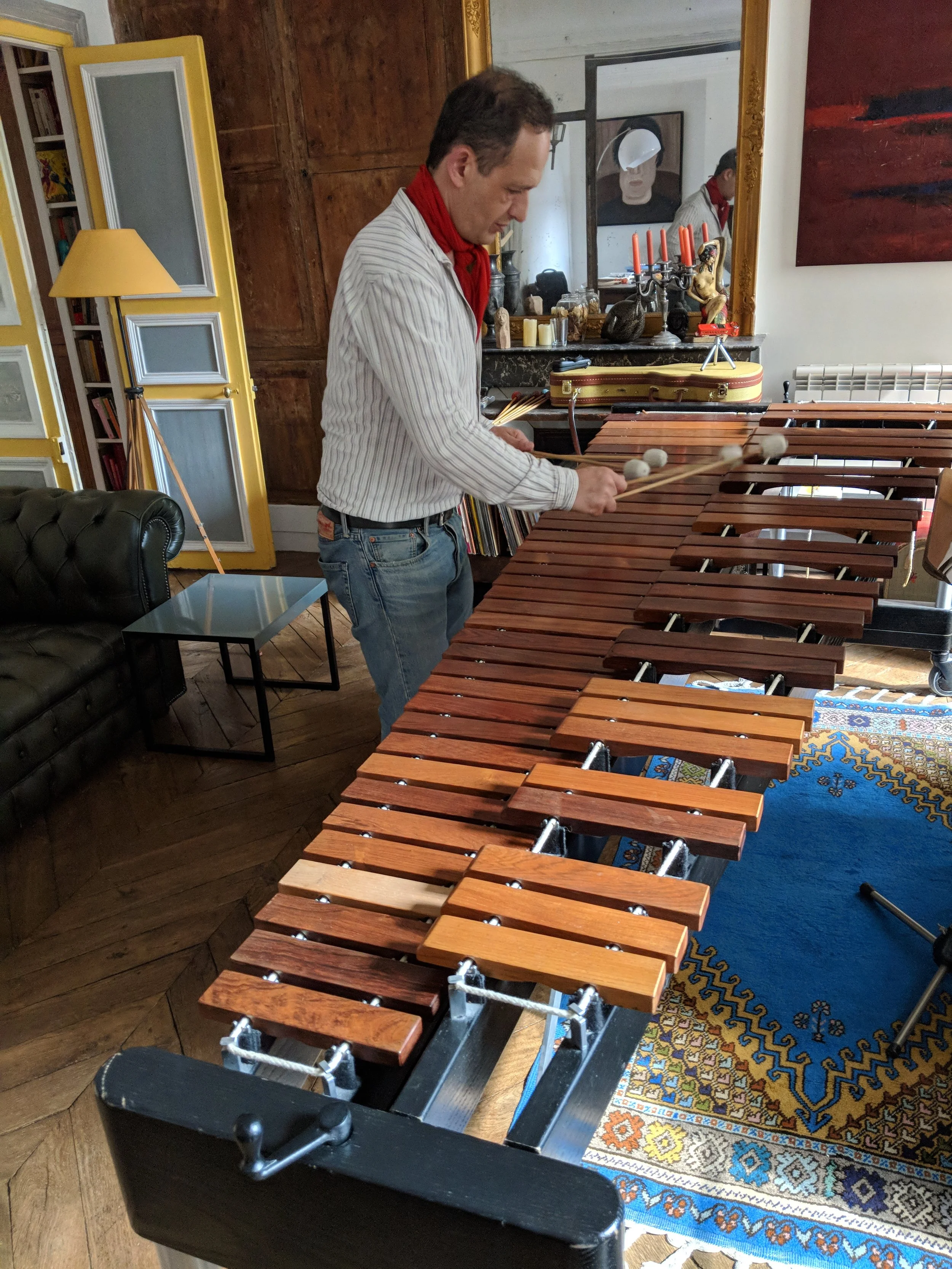 So, what did we work on exactly? I didn't go to Paris to learn about French music, and I also didn't go to "get better at marimba". I went because Eric can compose and improvise on a level that (in my opinion) no other marimbist out there can. I believe that the marimba is as versatile, adaptive, and useful as the guitar and piano and the world needs more of that! In our lessons, we talked about ways to manage chord progressions that are specific to the marimba. He threw pages and pages of chord exercises at me that totally kicked my butt and made me listen to some of his favorite chord moments by other artists. He told me about his artistic process to work through a composition idea and about the backstories to many of his popular compositions (some of which are hilarious). The majority of my time, however, was spent showing him my compositions and workshoping them together. It was very inspirational to hear him improvise over my compositions and suggest ideas.